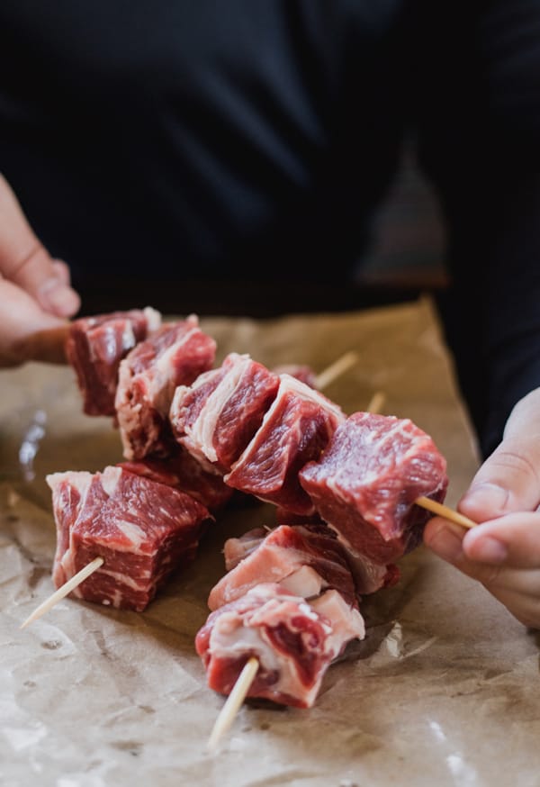 - 2 Pounds top sirloin steak cut into 1-inch cubes